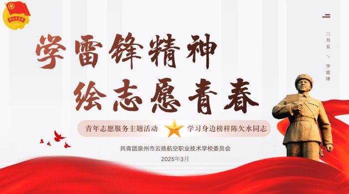 2025年3月5日,正值第62個(gè)“學(xué)雷鋒紀(jì)念日”與第25個(gè)“中國(guó)青年志愿者服務(wù)日”之際,為深入學(xué)習(xí)和貫徹黨的二十大精神,積極弘揚(yáng)“奉獻(xiàn)、友愛(ài)、互助、進(jìn)步”的志愿精神,我校特此舉辦了以“學(xué)雷鋒精神·繪志愿青春”為主題的團(tuán)日活動(dòng)。本次活動(dòng)形式多樣,包括專(zhuān)題學(xué)習(xí)講座與感人故事宣講等環(huán)節(jié),旨在向全校團(tuán)員青年及青年志愿者生動(dòng)傳達(dá)雷鋒同志的光輝事跡及我們身邊的時(shí)代楷?!惽匪镜南冗M(jìn)典范,讓志愿精神的璀璨光芒照亮校園每一個(gè)角落。