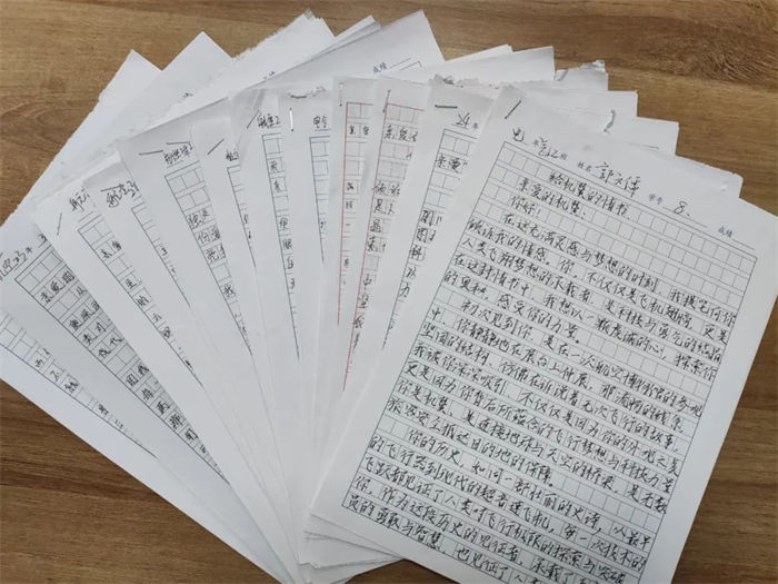 云端敘事、鋼鐵的溫柔、起落架上的夕陽(yáng)、渦輪轟鳴里的詩(shī)歌、航跡云畫下的誓言。同學(xué)們以深情文字傾訴對(duì)機(jī)翼的摯愛,揮毫潑墨間,一封封熾熱情書躍然紙上。